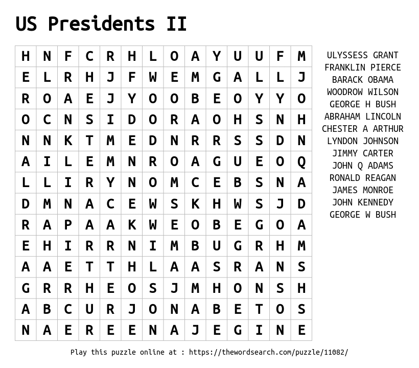Find all of the words hidden in the letter grid which relate to US Presidents
