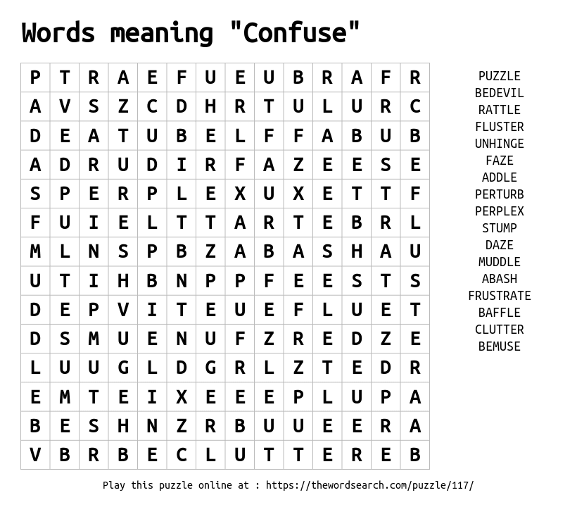 Words meaning "Confuse" Printable Word Search