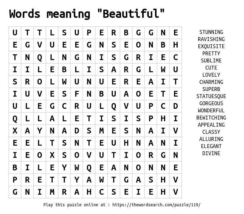 Words meaning "Beautiful" Printable Word Search