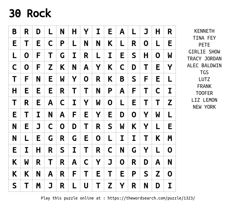 Puzzle based on the NBC sitcom, 30 Rock including popular characters and other related words.