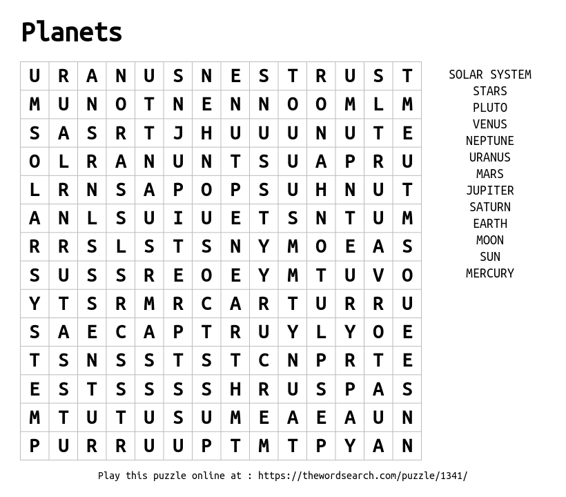 Planets Printable Word Search