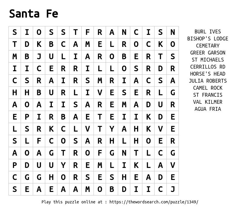 Santa Fe Printable Word Search