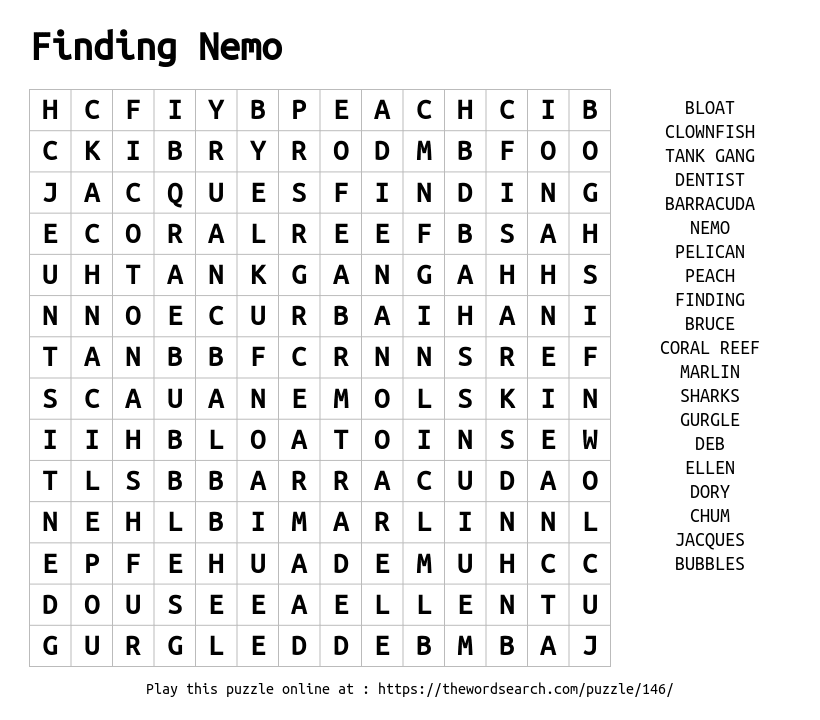 Finding Nemo Printable Word Search