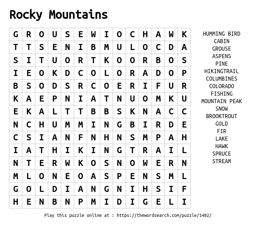 Rocky Mountains Printable Word Search