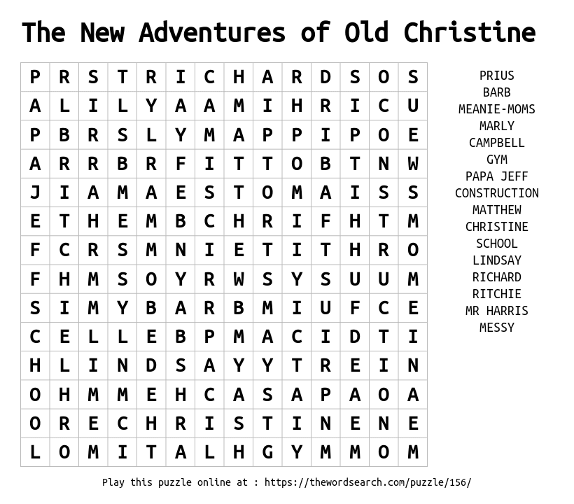 The New Adventures of Old Christine Printable Word Search