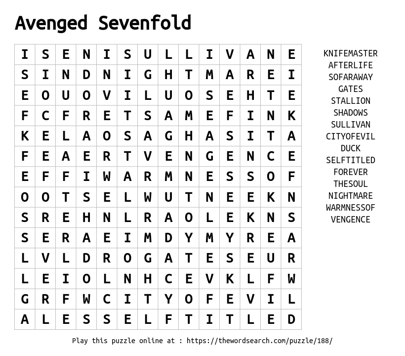 Avenged Sevenfold Printable Word Search