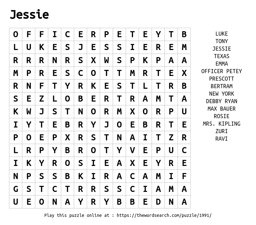 Jessie Printable Word Search