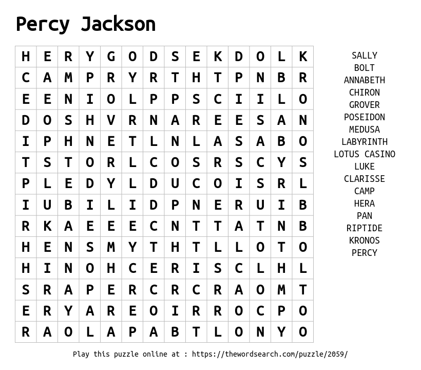 Percy Jackson Printable Word Search