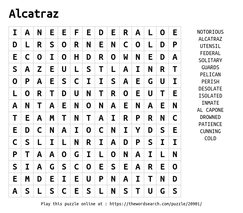 Alcatraz Printable Word Search
