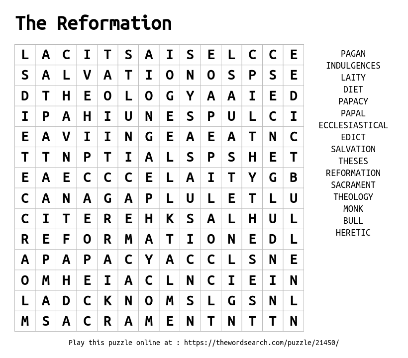 The Reformation Printable Word Search