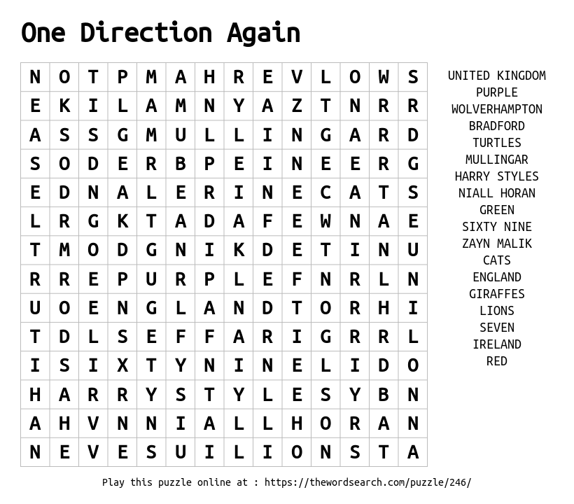 One Direction Again Printable Word Search