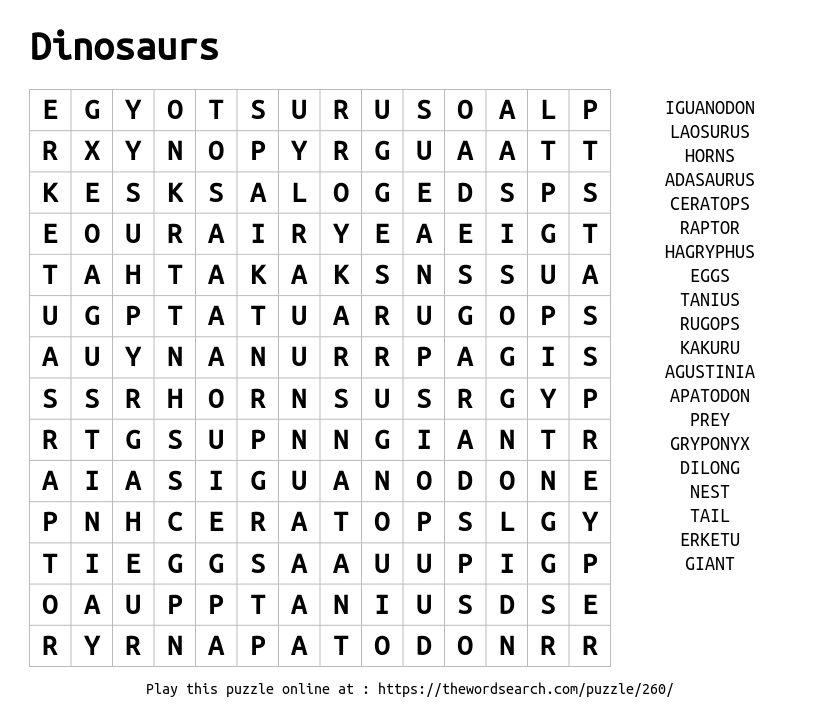 Dinosaurs Printable Word Search