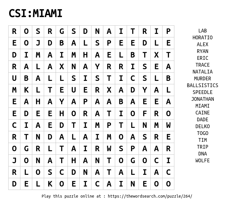CSI:MIAMI Printable Word Search