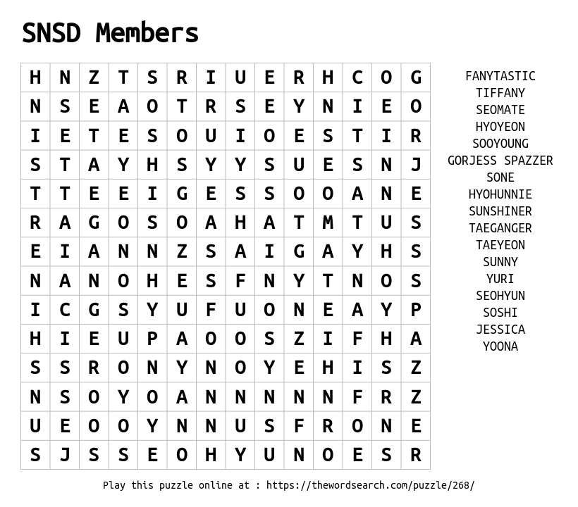 SNSD Members Printable Word Search