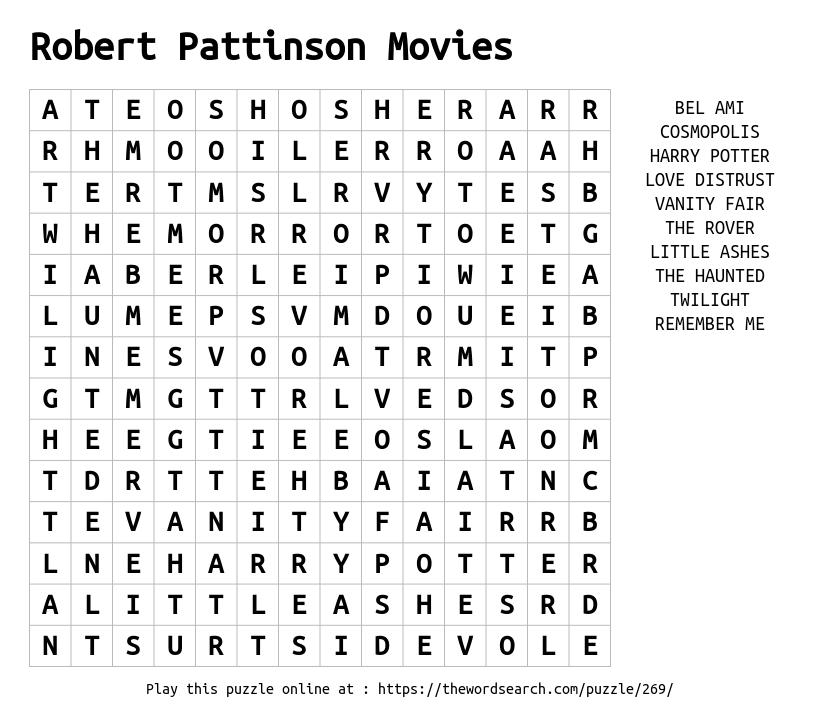 This game contains just a small few of the movies which Robert Pattinson has appeared in.