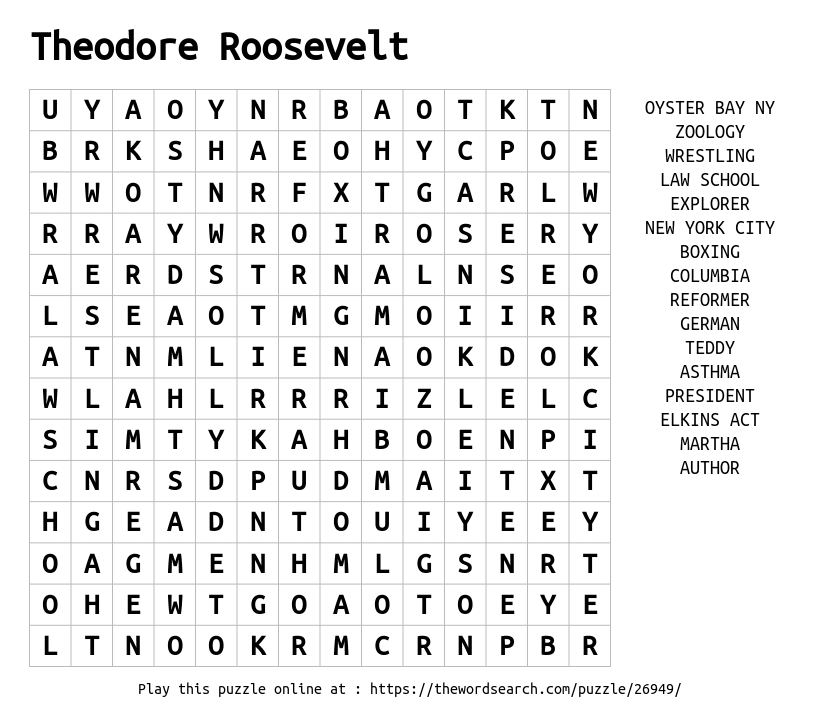 Theodore Roosevelt Printable Word Search