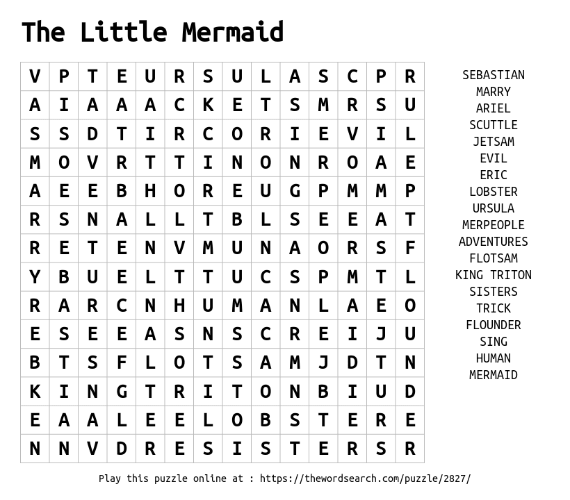 The Little Mermaid Printable Word Search