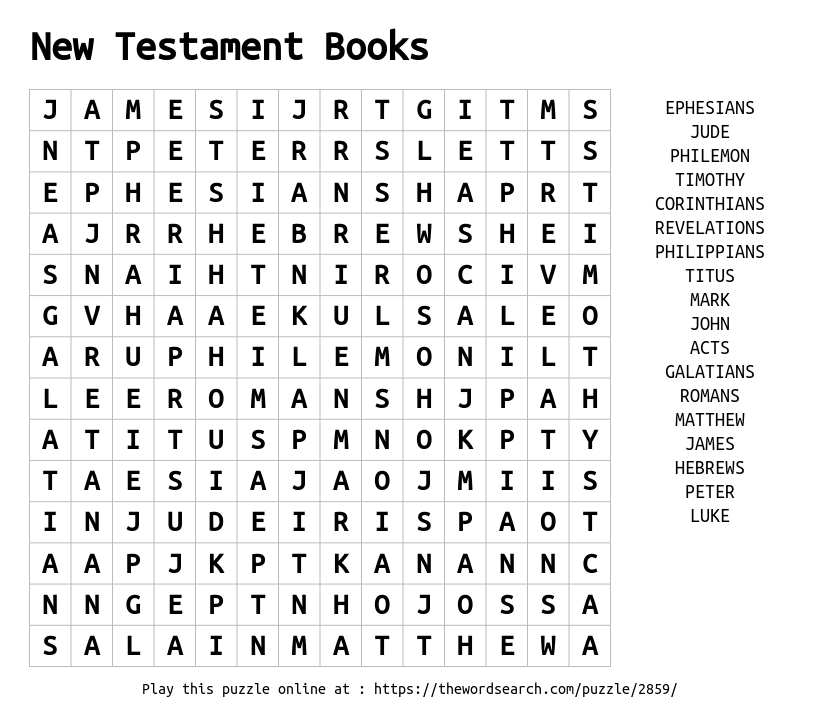 New Testament Books Printable Word Search