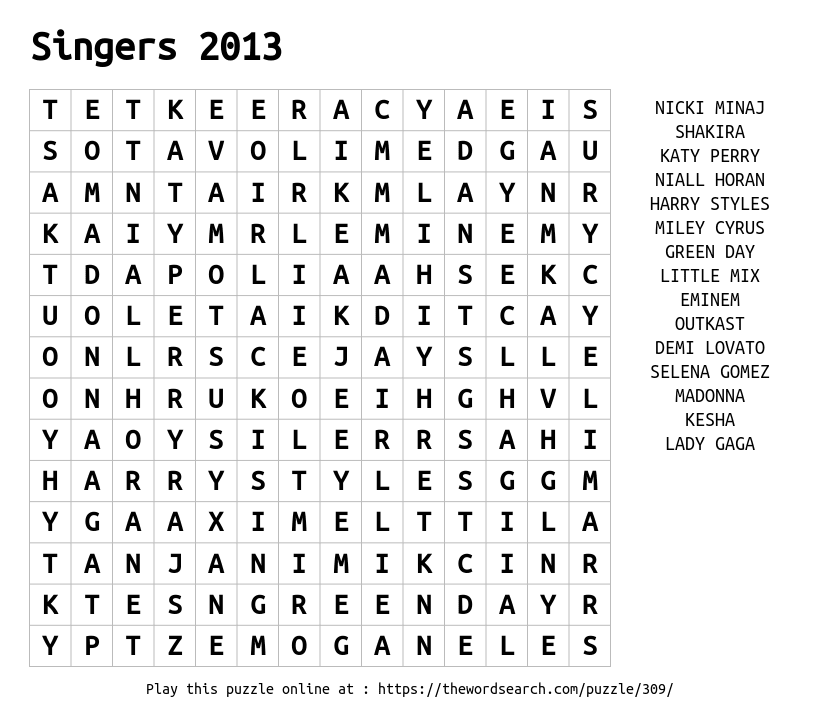 Puzzle ID: 309 | Generated by WordsPrintable.com