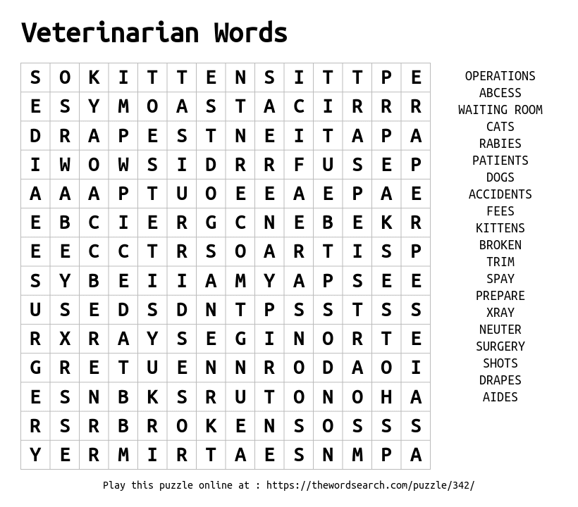 Veterinarian Words Printable Word Search