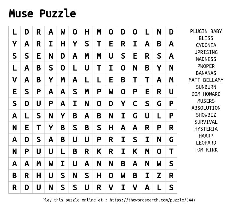 Muse Puzzle Printable Word Search