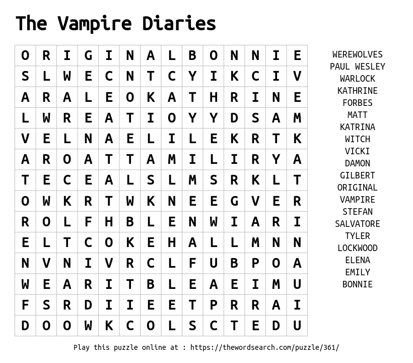 The Vampire Diaries Printable Word Search