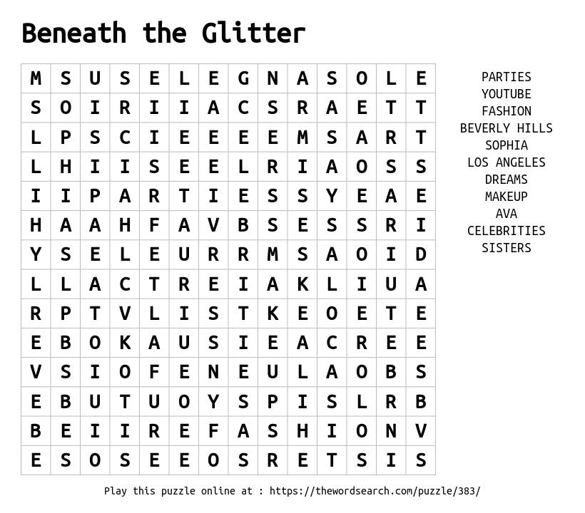 Beneath the Glitter Printable Word Search