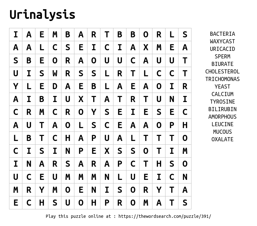 Urinalysis Printable Word Search