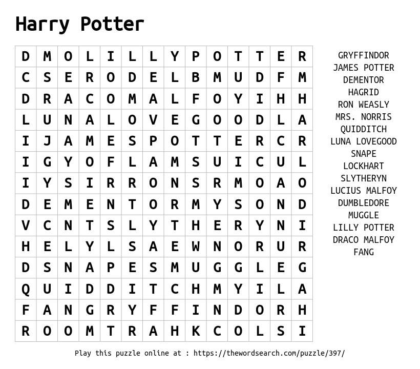 This puzzle contains longer words found in the movie franchise and books of Harry Potter