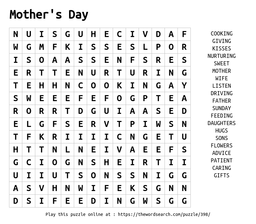 Mother's Day Printable Word Search