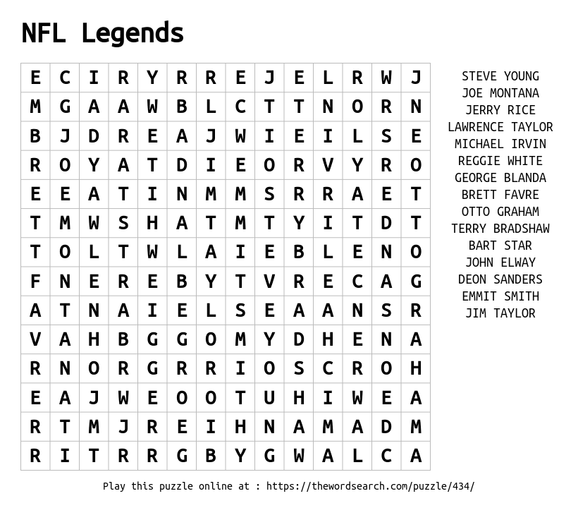 NFL Legends Printable Word Search