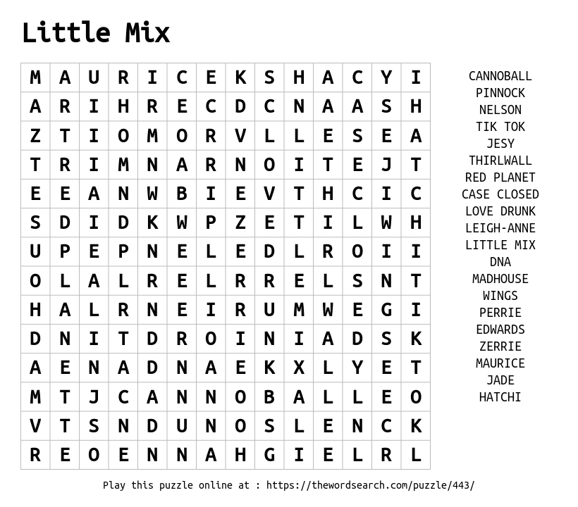 Word search puzzle on the British all girl group, Little Mix. Check them out, the're awesome!