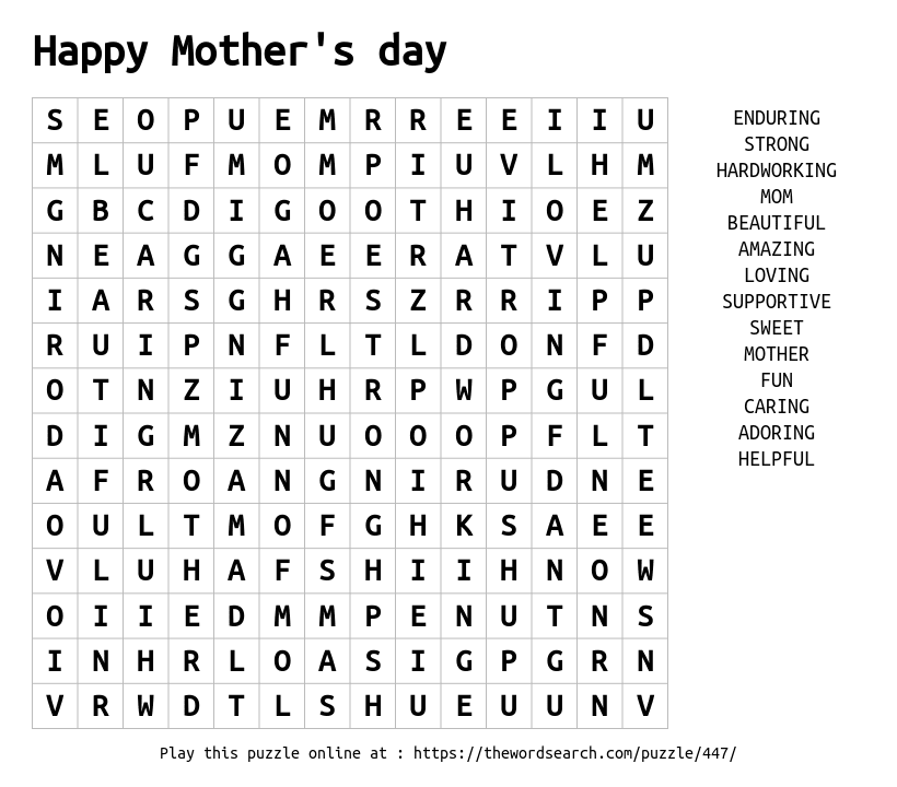 Happy Mother's day Printable Word Search