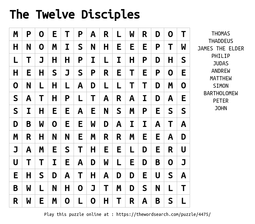 The Twelve Disciples Printable Word Search