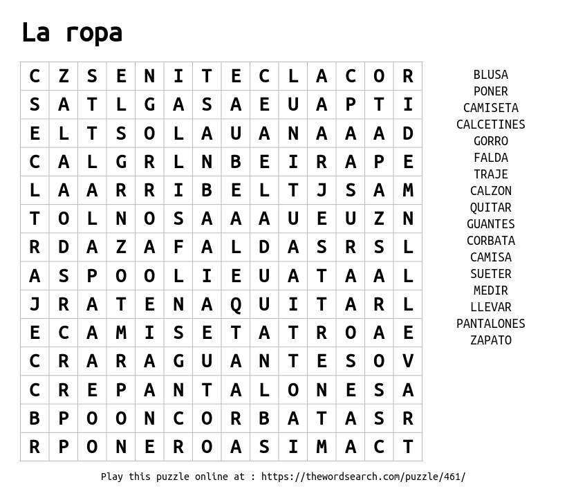 Puzzle ID: 461 | Generated by WordsPrintable.com