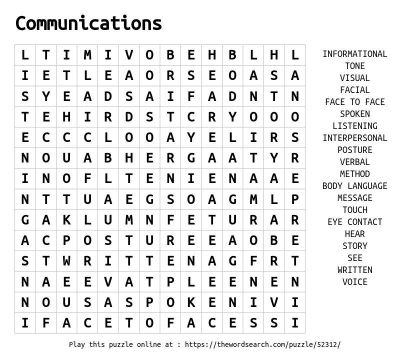 Communications Printable Word Search