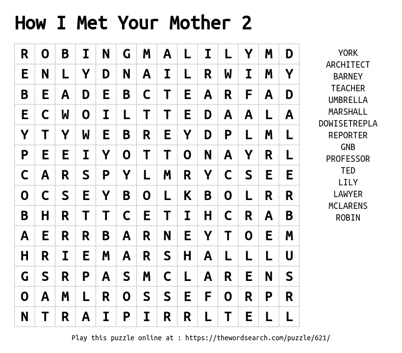 How I Met Your Mother 2 Printable Word Search