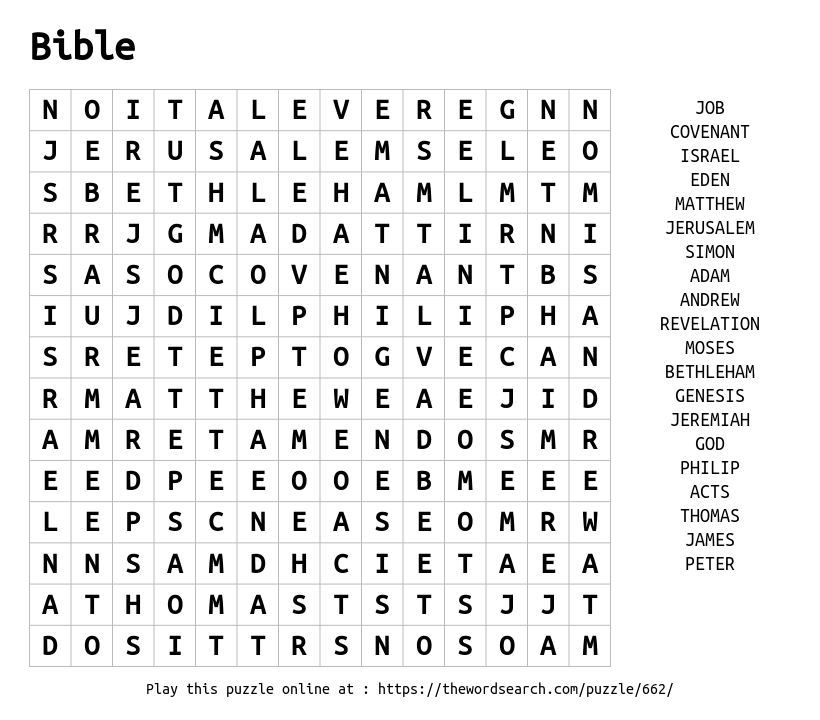 Bible Printable Word Search