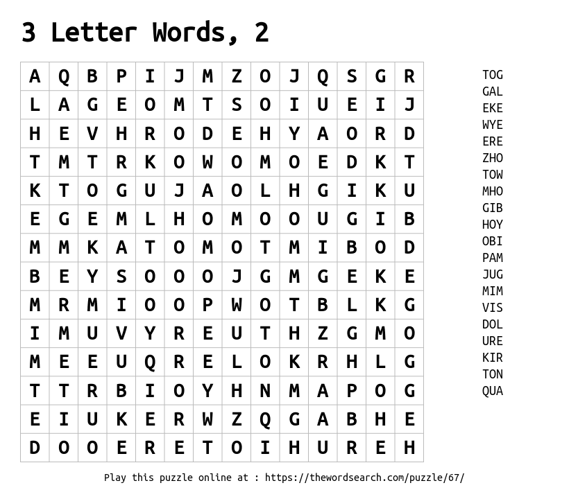 3 Letter Words, 2 Printable Word Search