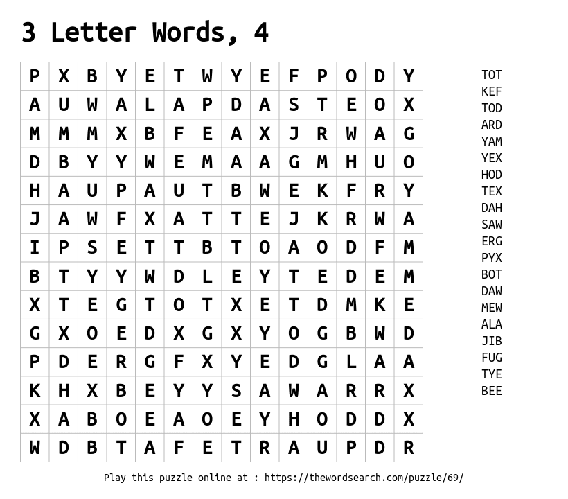 3 Letter Words, 4 Printable Word Search