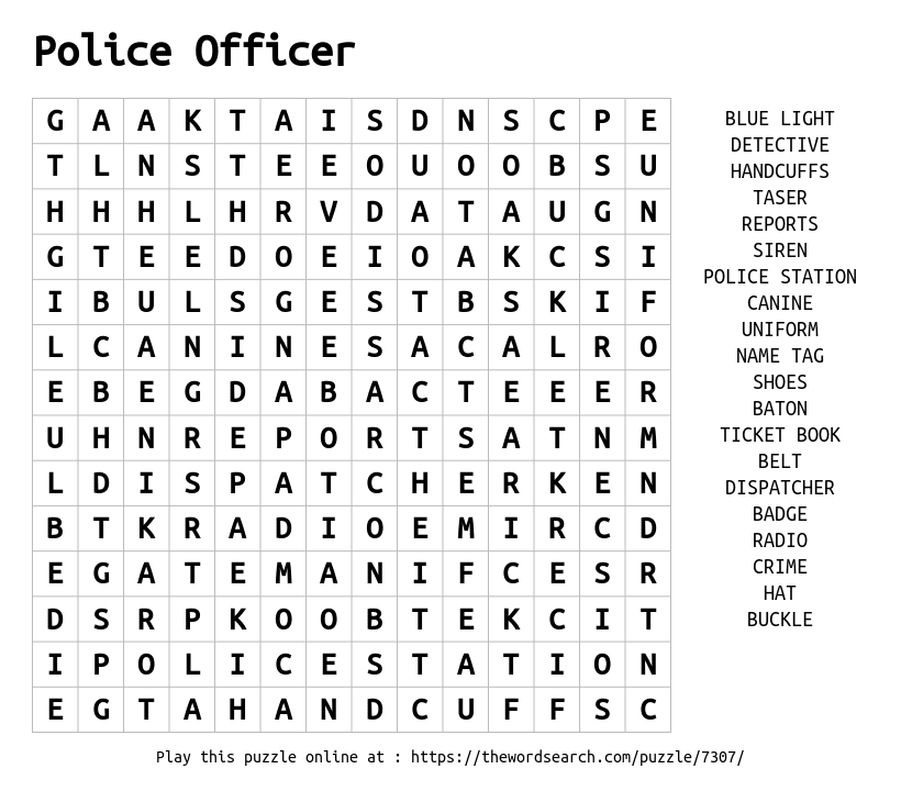 Police Officer Printable Word Search