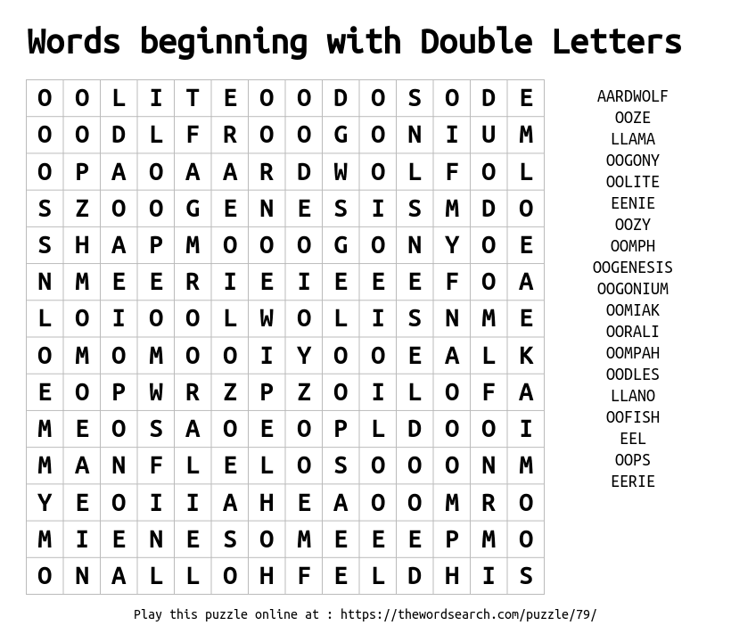 Words beginning with Double Letters Printable Word Search