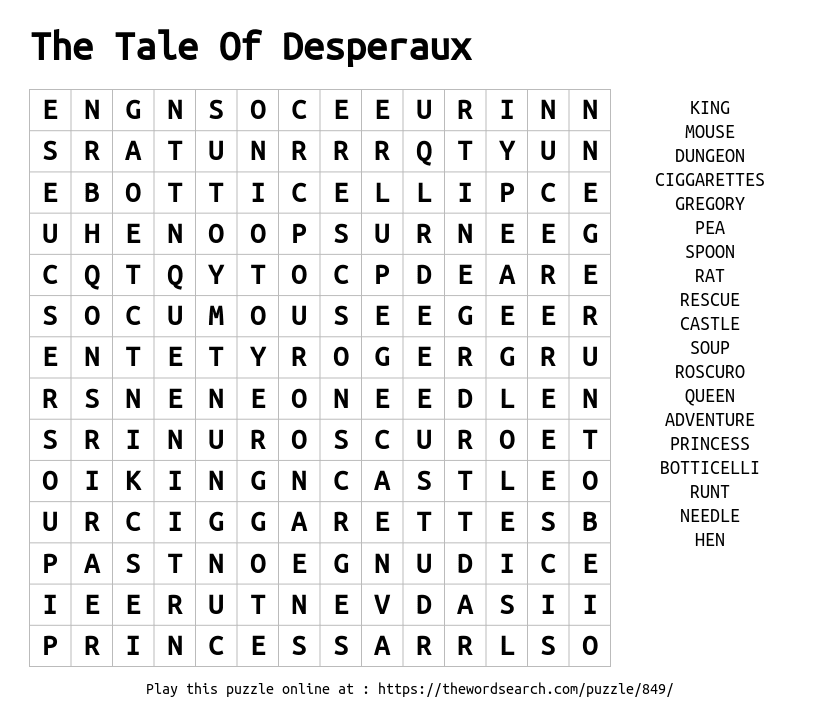 The Tale Of Desperaux Printable Word Search