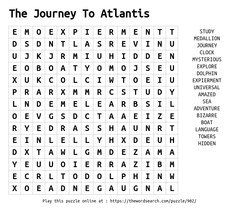 The Journey To Atlantis Printable Word Search