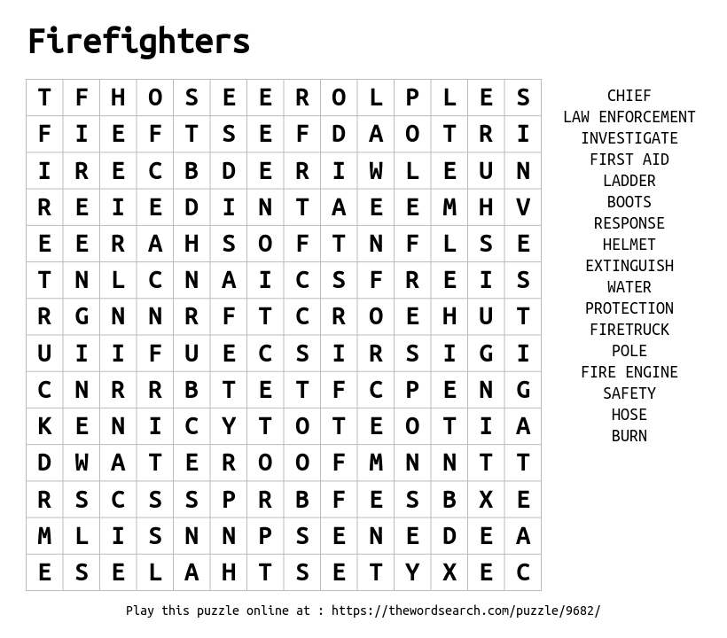 Firefighters Printable Word Search